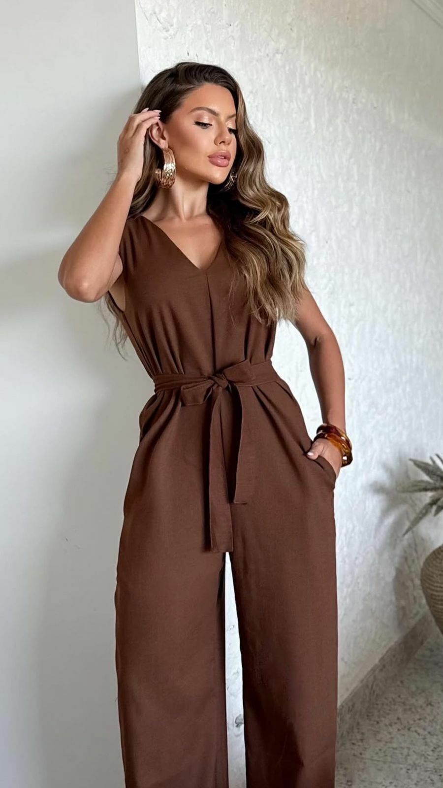Destaques do Macacão Fernanda: - Modelagem pantalona que combina conforto e elegância - Faixa ajustável para valorizar a cintura e garantir um caimento perfeito - Tecido de alta qualidade, leve e agradável ao toque - Versatilidade para compor looks casuais ou mais sofisticados - Design moderno que acompanha as tendências da moda feminina